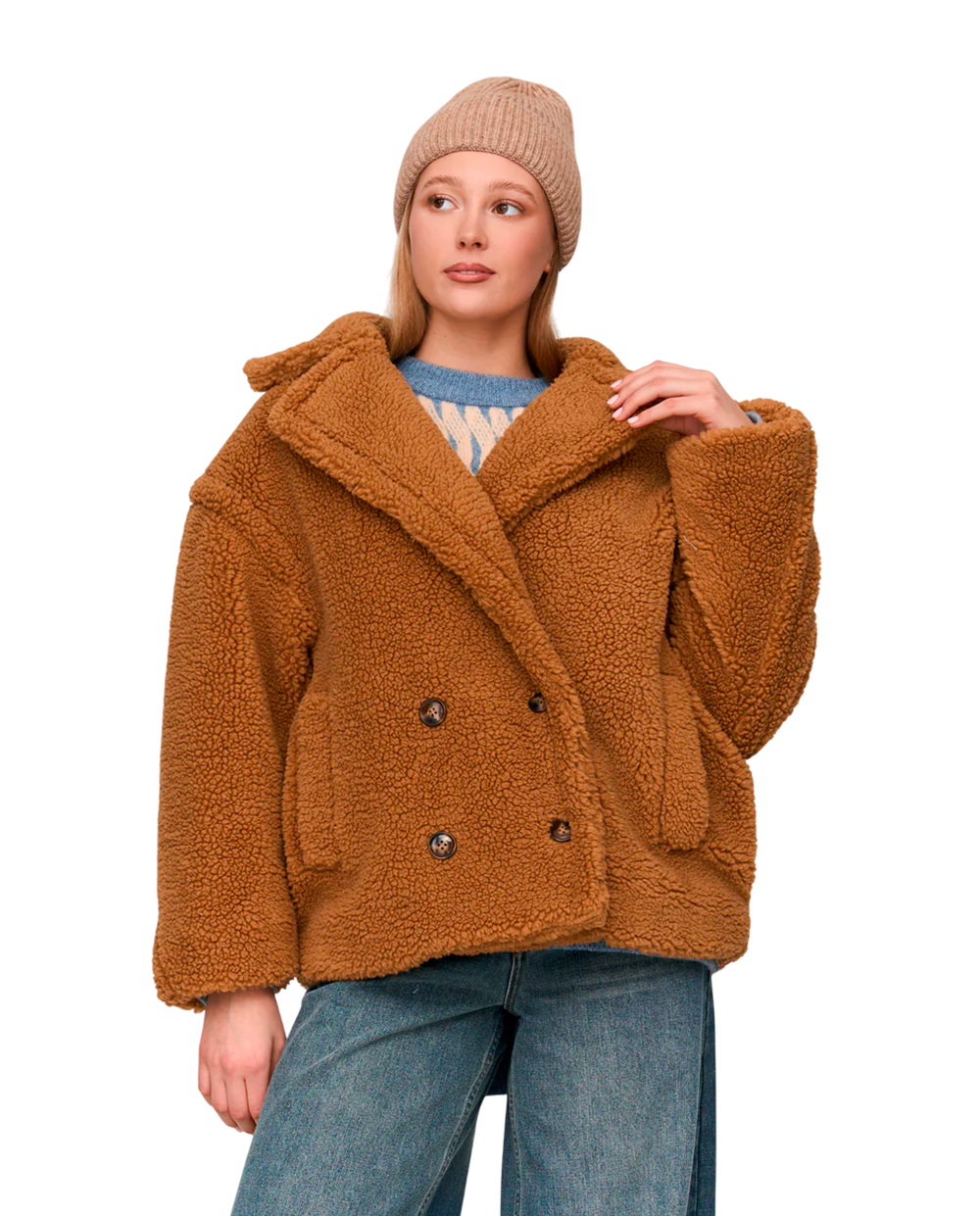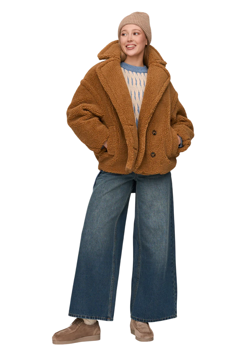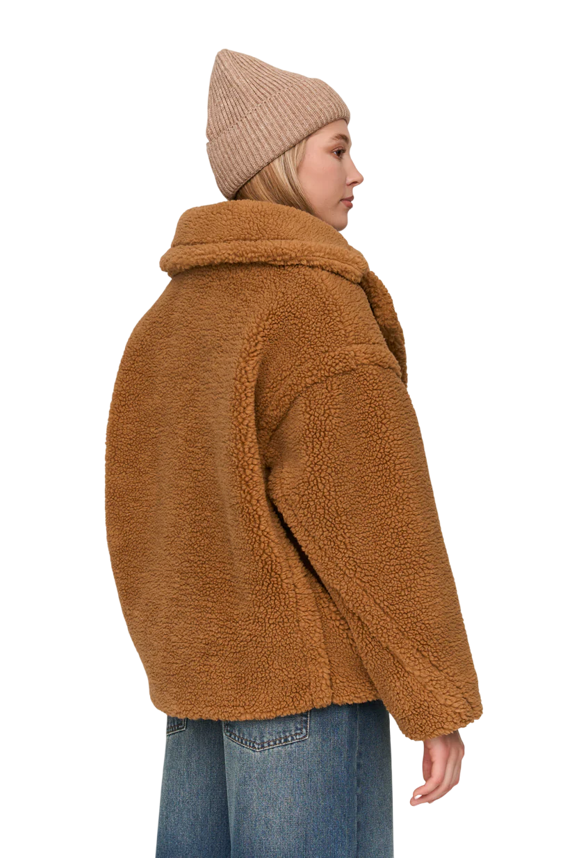 Aquece o teu estilo com esta jacket em tecido teddy — macia, bold e pronta para virar cabeças.