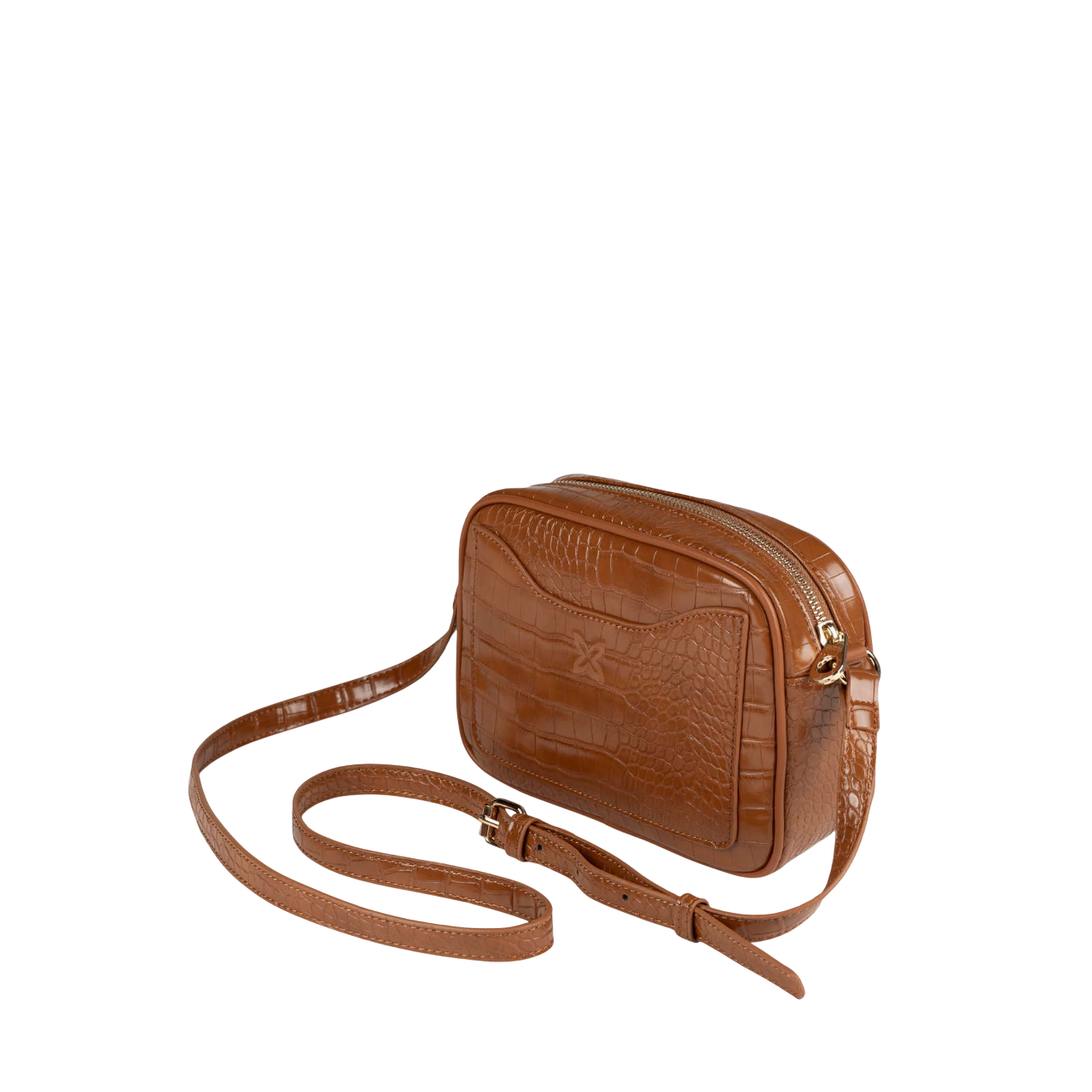 Estilo selvagem, tamanho perfeito. Esta crossbody com textura crocodilo é o toque feroz que faltava no teu look.
