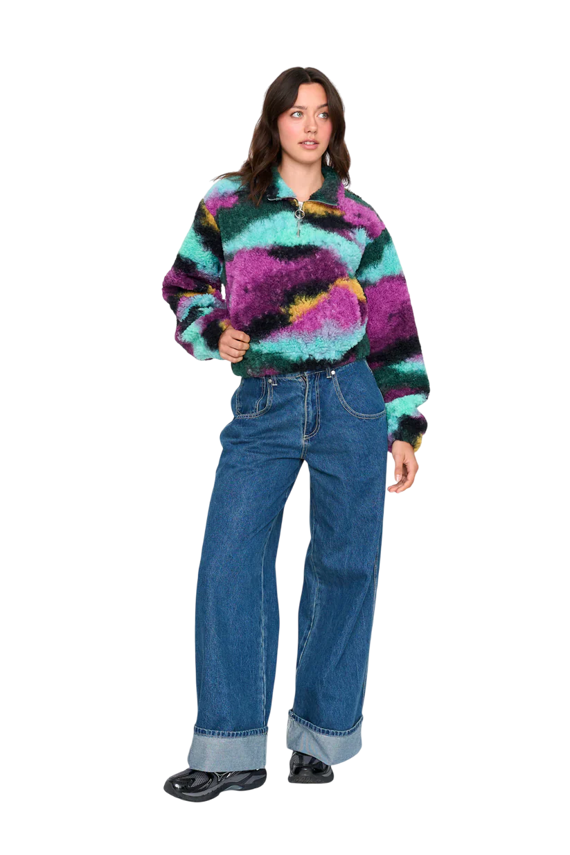 Aquece o corpo e o estilo — esta fleece chega com vibe forte e cheia de cor.